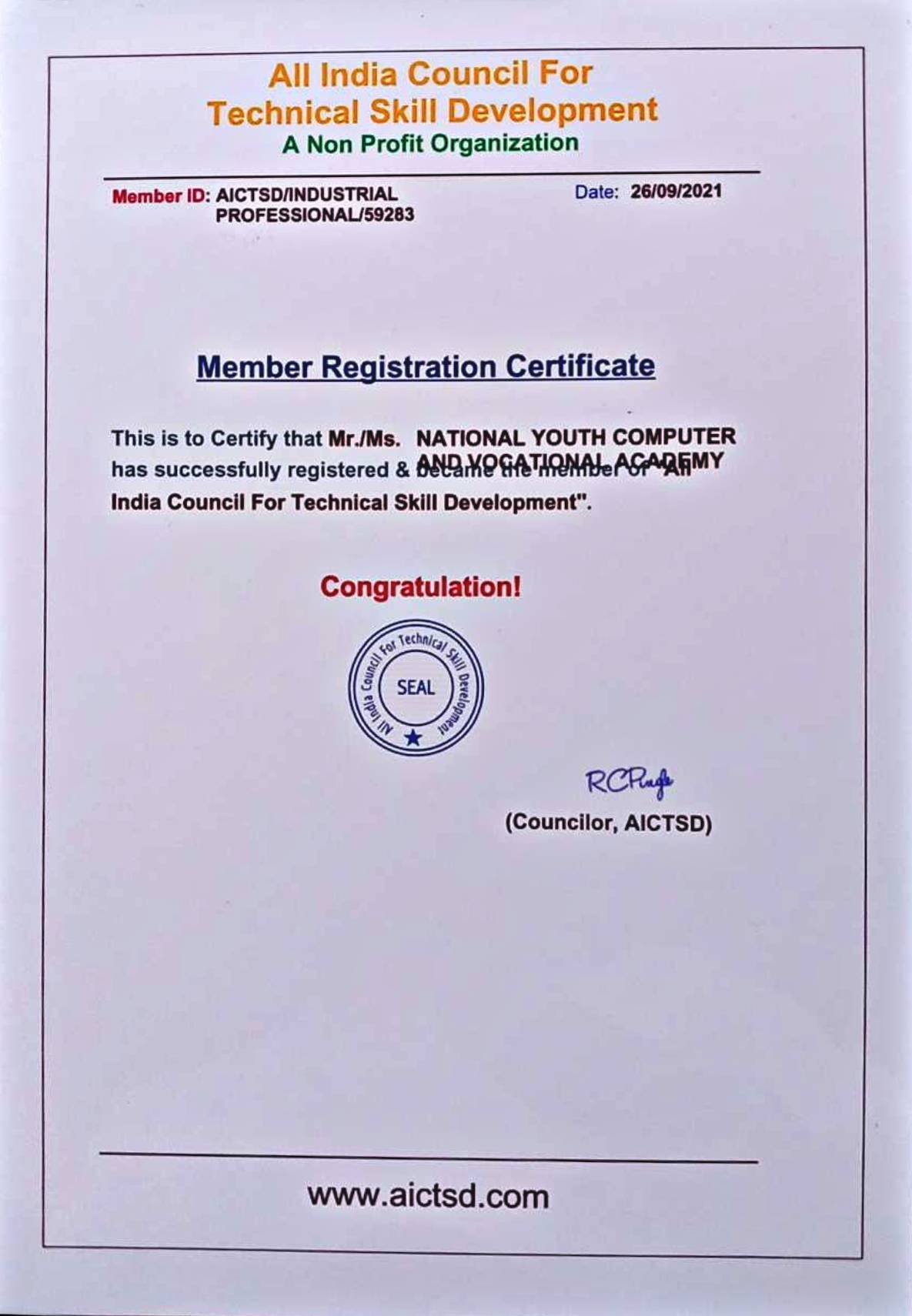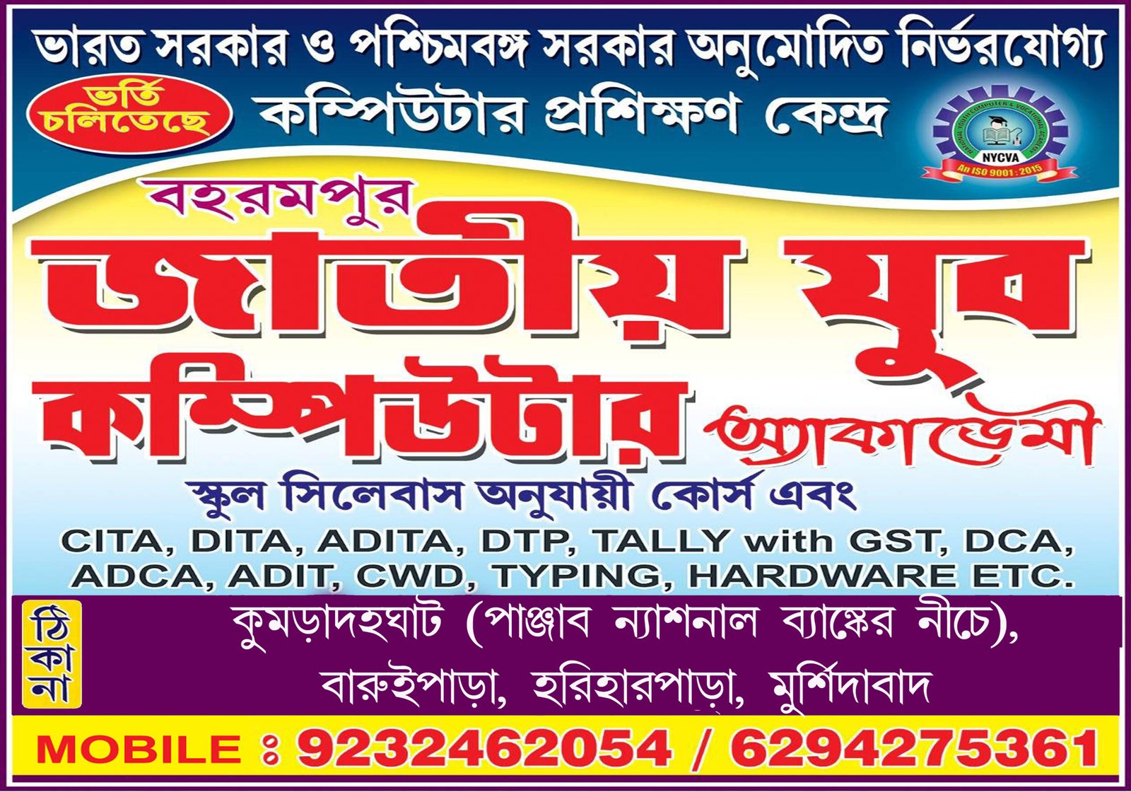 NATIONAL YOUTH COMPUTER & VOCATIONAL ACADEMY (NYCVA) is the No. 1 fast growing Computer and Vocational Brand in India, is registered under PTA –1882. Pledge certified of National Human